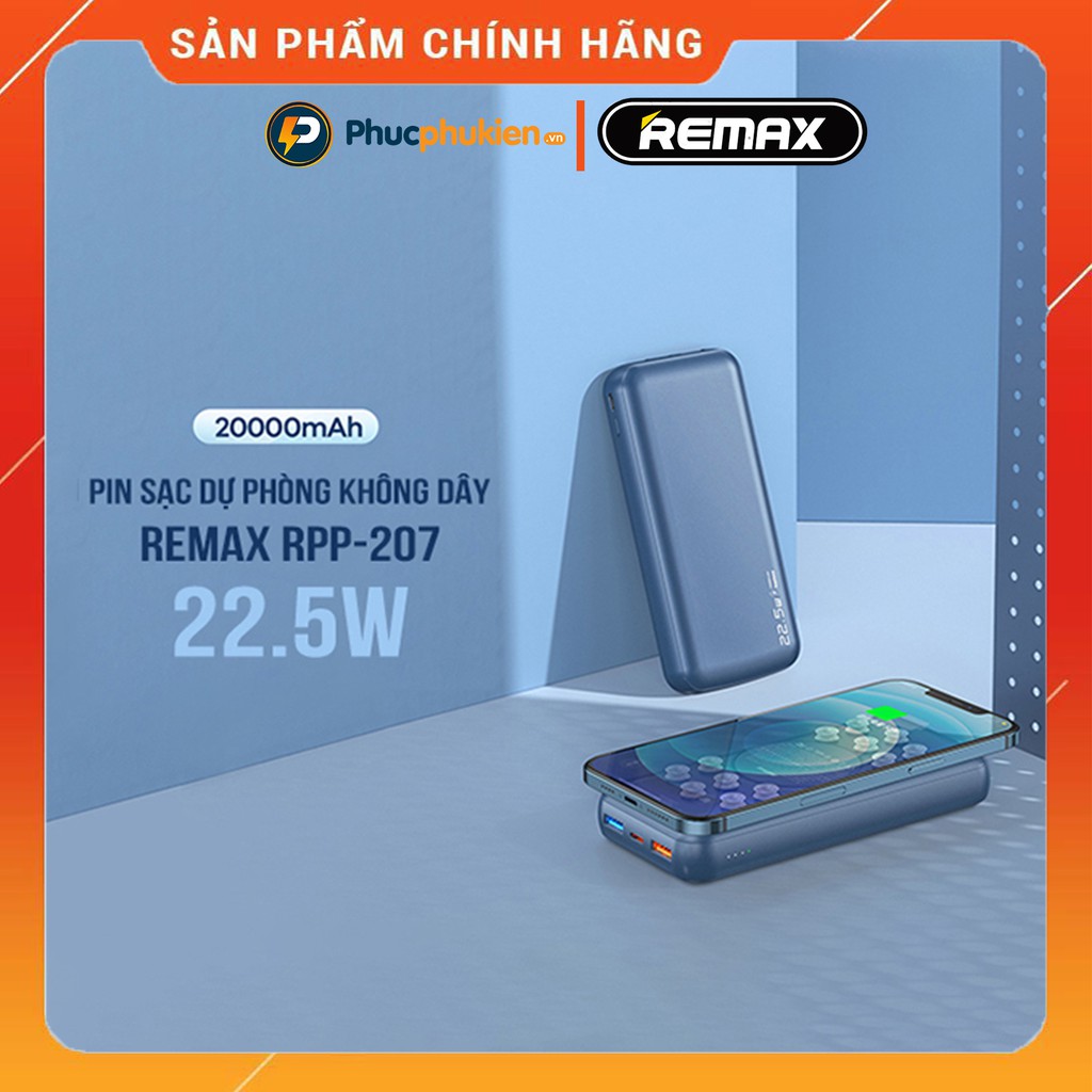 Giới thiệu Sạc dự phòng không dây 20000mah chính hãng Remax RPP 207 sạc không dây 15w và 3 cổng sạc nhanh iPhone 20w Phúc Phụ Kiện