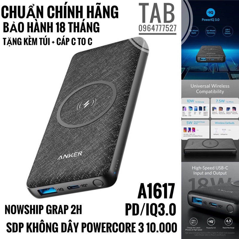 Điện Thoại & Phụ Kiện > Phụ kiện > Sạc dự phòng & Pin > Sạc dự phòng || Sạc Dự Phòng Không Dây ANKER PowerCore III 10000mAh - A1617 (Bảo Hành 18T)Còn hàng