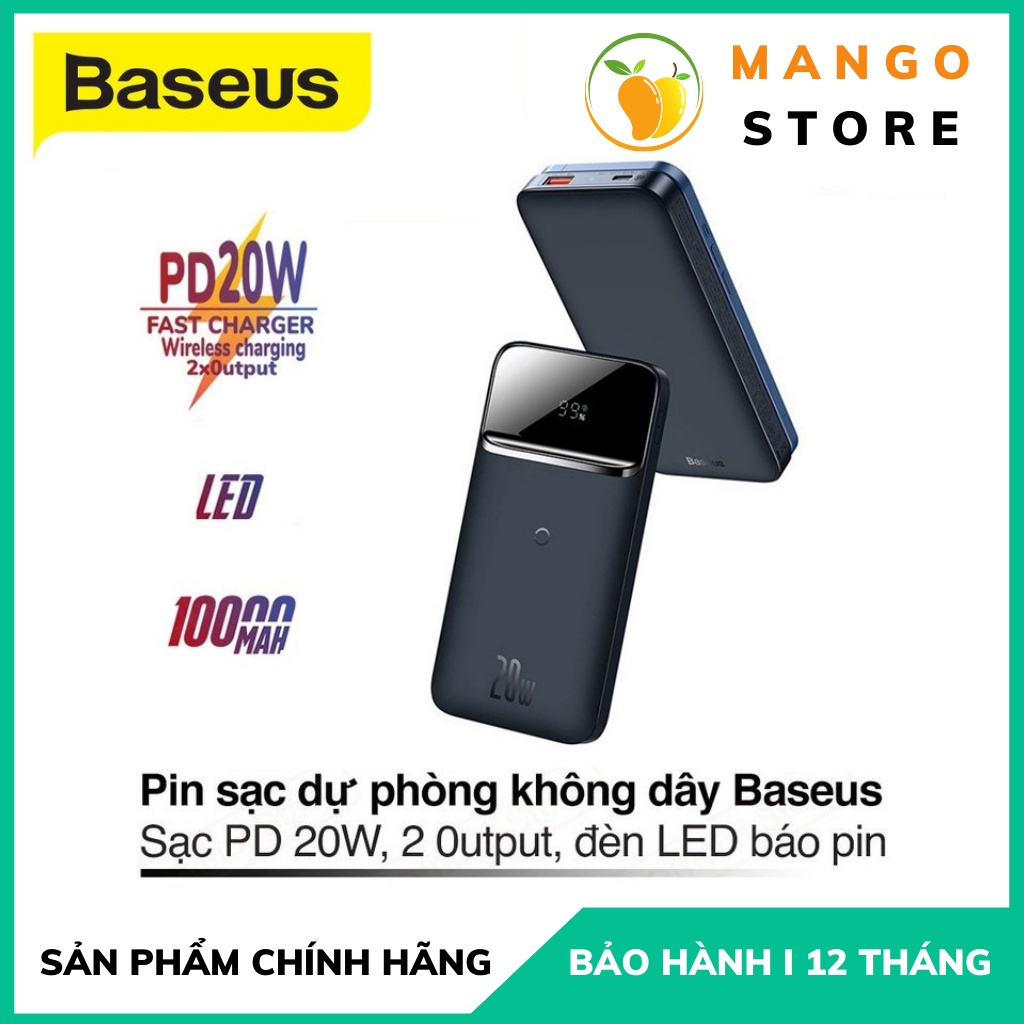 Sạc dự phòng Không Dây Baseus Dung Lượng 10.000mAh Sạc Nhanh 20w cho iPhone 12 Chính Hãng Baseus