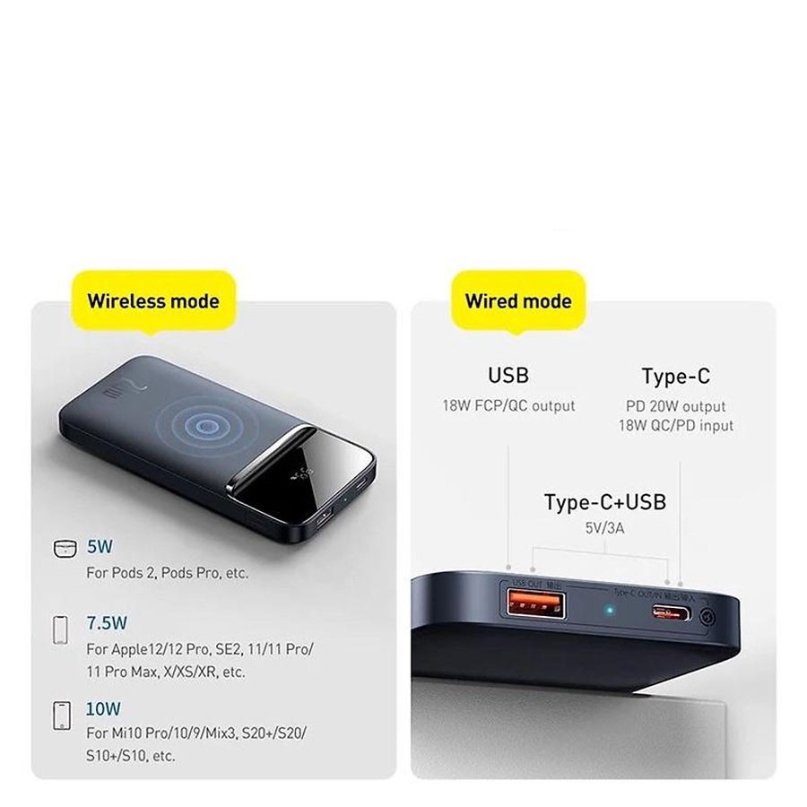 Sạc dự phòng không dây Baseus PPMT-03 dung lượng 10000mAh, sạc nhanh PD 20W, củ sạc chính hãng cao cấp