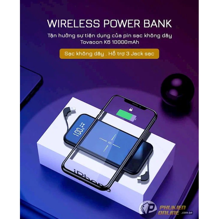 Điện Thoại & Phụ Kiện > Phụ kiện > Sạc dự phòng & Pin > Sạc dự phòng || Sạc Dự Phòng Không Dây LOKA K6 10.000mAh - Tích Hợp Đa Cổng + Hỗ Trợ 3 Jack Sạc MicroUSCòn hàng