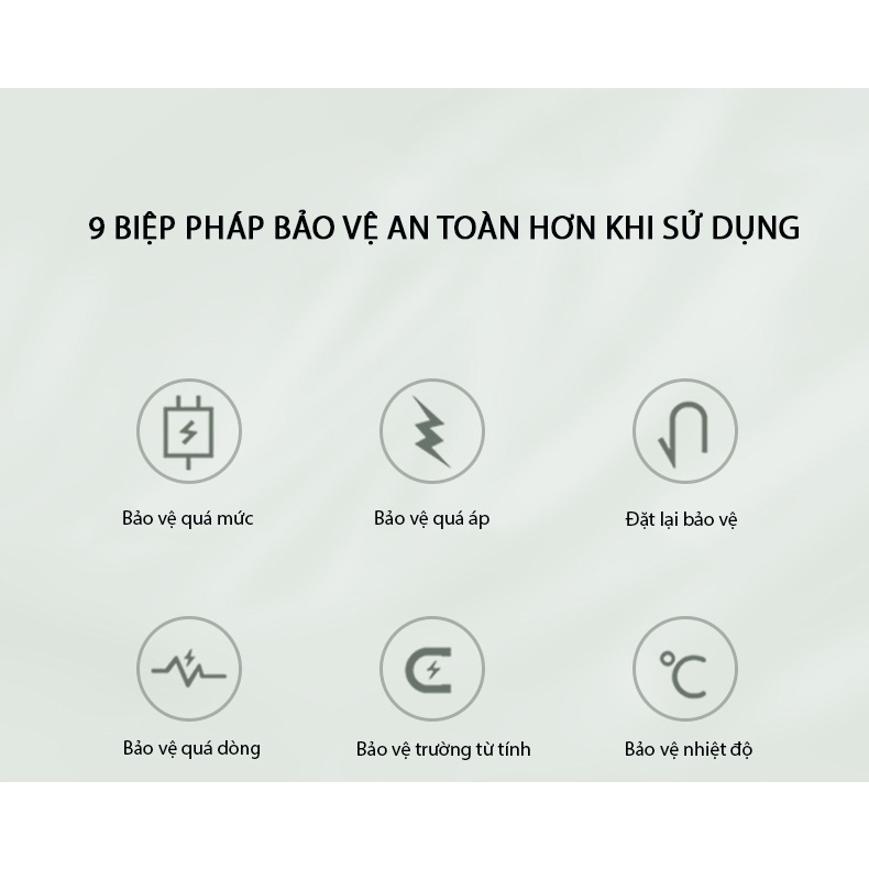 + Sạc sử dụng chip bảo vệ kiểm soát điện năng thông minh với 9 biện pháp bảo vệ giúp bảo vệ thiết bị của bạn được an toàn hơn.