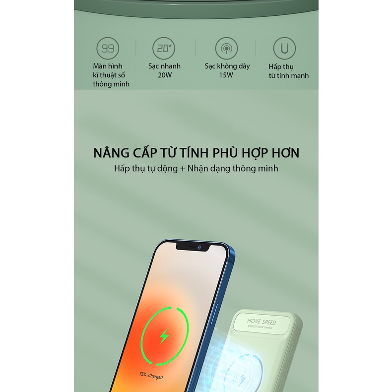 Sạc Dự Phòng Không Dây MagSafe MOVESPEED C10 10000Mah - Sạc Nhanh USB-A SCP 22,5W/ USB-C PD 20W/ MagSafe 15W Chuẩn Apple