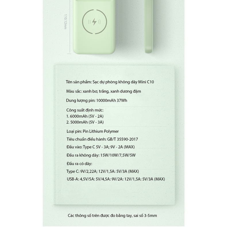 - Tên sản phẩm: Sạc dự phòng không dây Mini C10