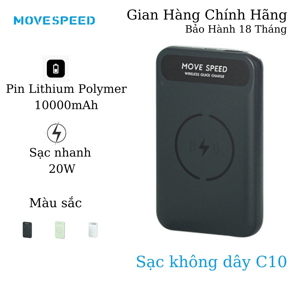Giới thiệu Sạc Dự Phòng Không Dây MagSafe MOVESPEED C10 10000Mah - Sạc Nhanh USB-A SCP 22,5W/ USB-C PD 20W/ MagSafe 15W Chuẩn Apple
