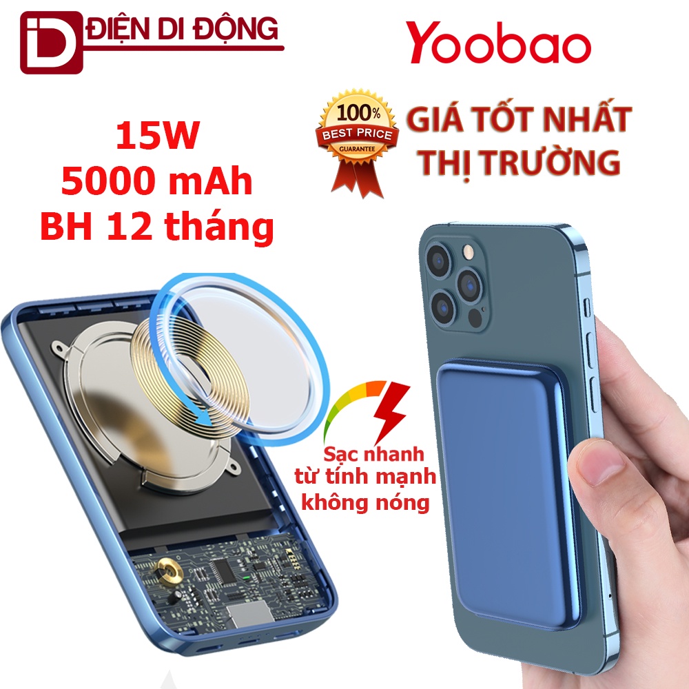 Sạc dự phòng không dây Magsafe Yoobao 15W/5000mAh sạc nhanh PD 18.5W. Sạc nhanh không bị nóng và hỗ trợ tất cả các loại máyĐiện Di Động Store phân phối sản phẩm Yoobao chính hãng với mức giá tốt nhất thị trường. Bao test 1 đổi một trong vòng 14 ngày. Bảo hành 1 năm theo quy định của nhà sản xuất. Sản phẩm chính của Shop là các sản phẩm sạc dự phòng, bộ lưu điện xách tay và các sản phẩm công nghệ.