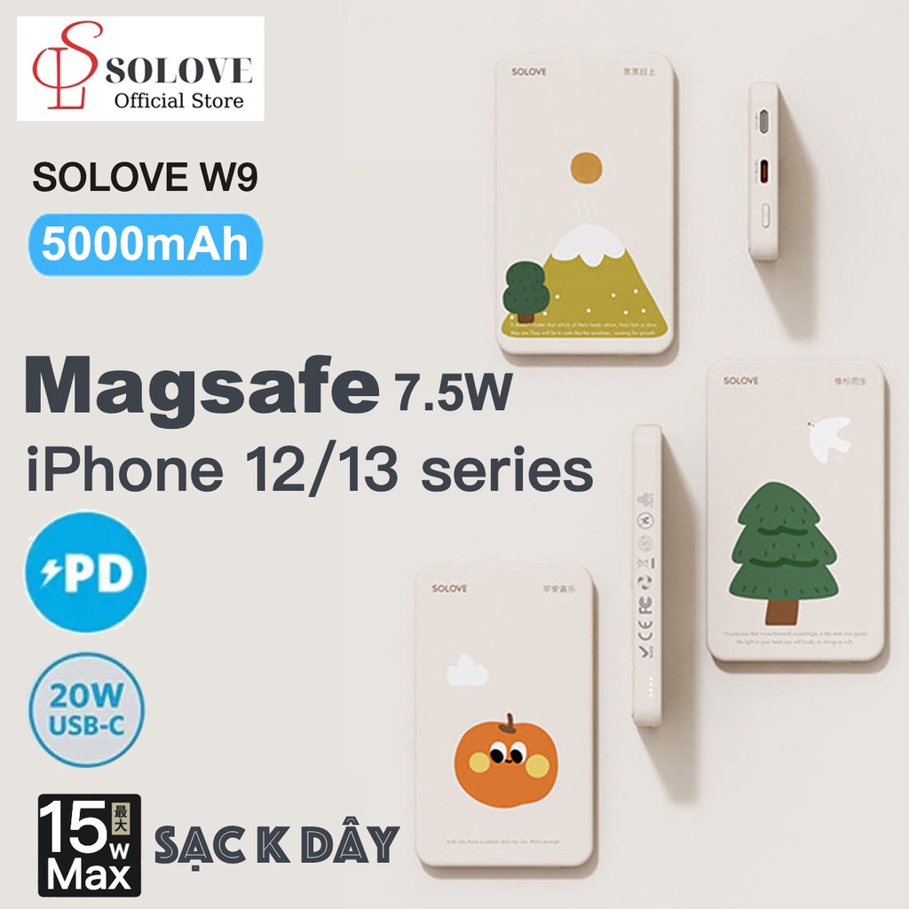 Sạc Dự Phòng Không Dây MagSafe SOLOVE W9 5000mAh,Hỗ Trợ Sạc Nhanh PD 15W/20W Có Thể Sạc Cùng Lúc Nhiều Thiết Bị Tiện Lợi