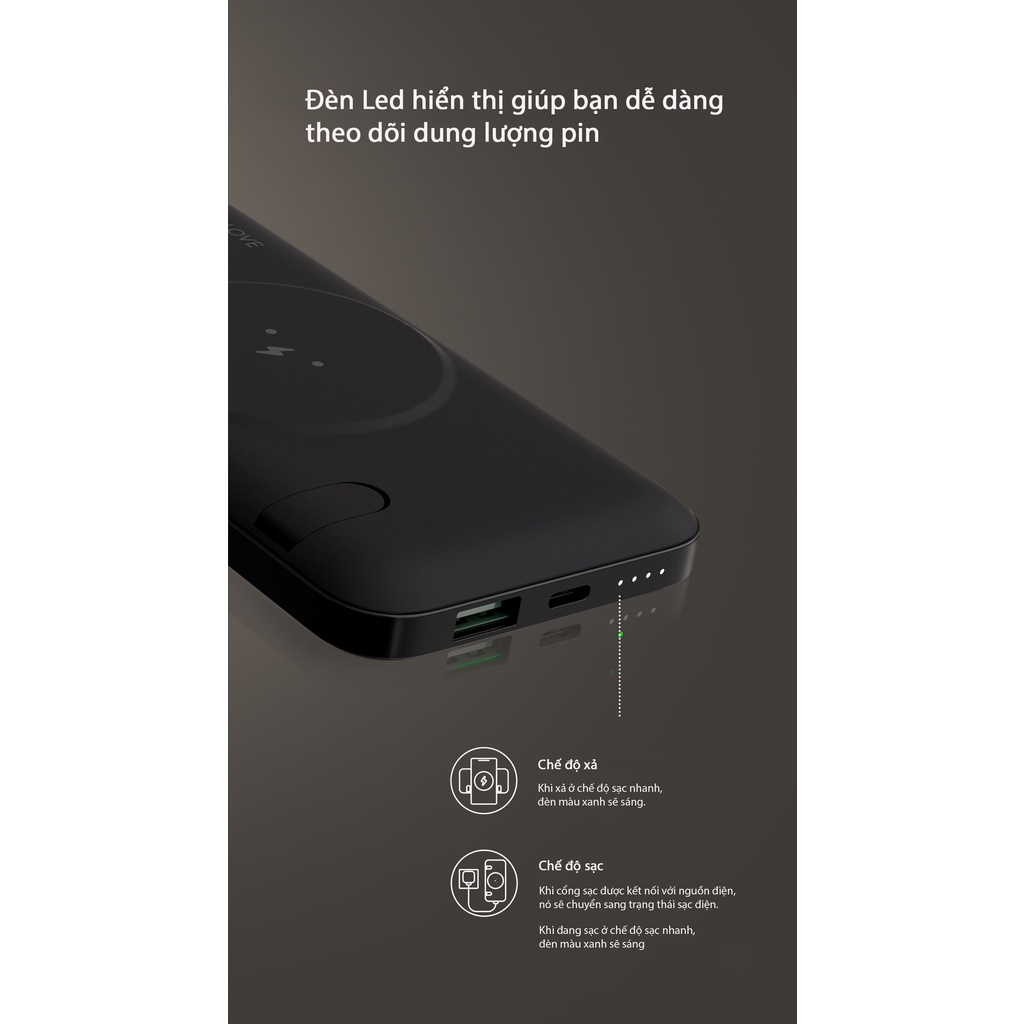 ƯU ĐIỂM SẢN PHẨM:- Sạc dự phòng không dây SOLOVE W10 được thiết kế 2 cổng sạc USB-A & USB-C kết hợp sạc không dây MagSafe giúp bạn có thể cùng lúc sạc nhiều thiết bị vô cùng tiện lợi.