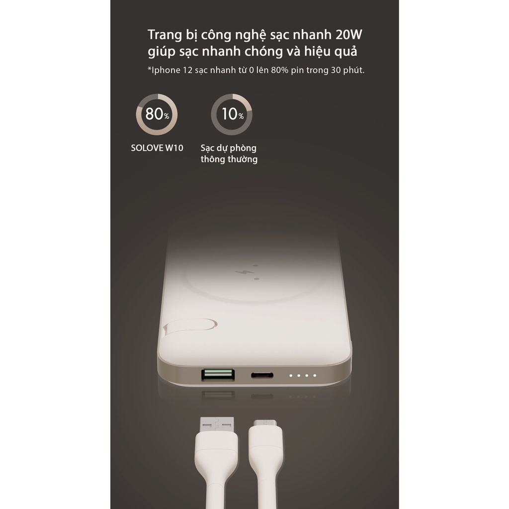 Giới thiệu Sạc Dự phòng Không Dây MagSafe SOLOVE W10 Dung Lượng Pin 10000Mah - Hỗ Trợ Sạc Nhanh Lên Đến 20W