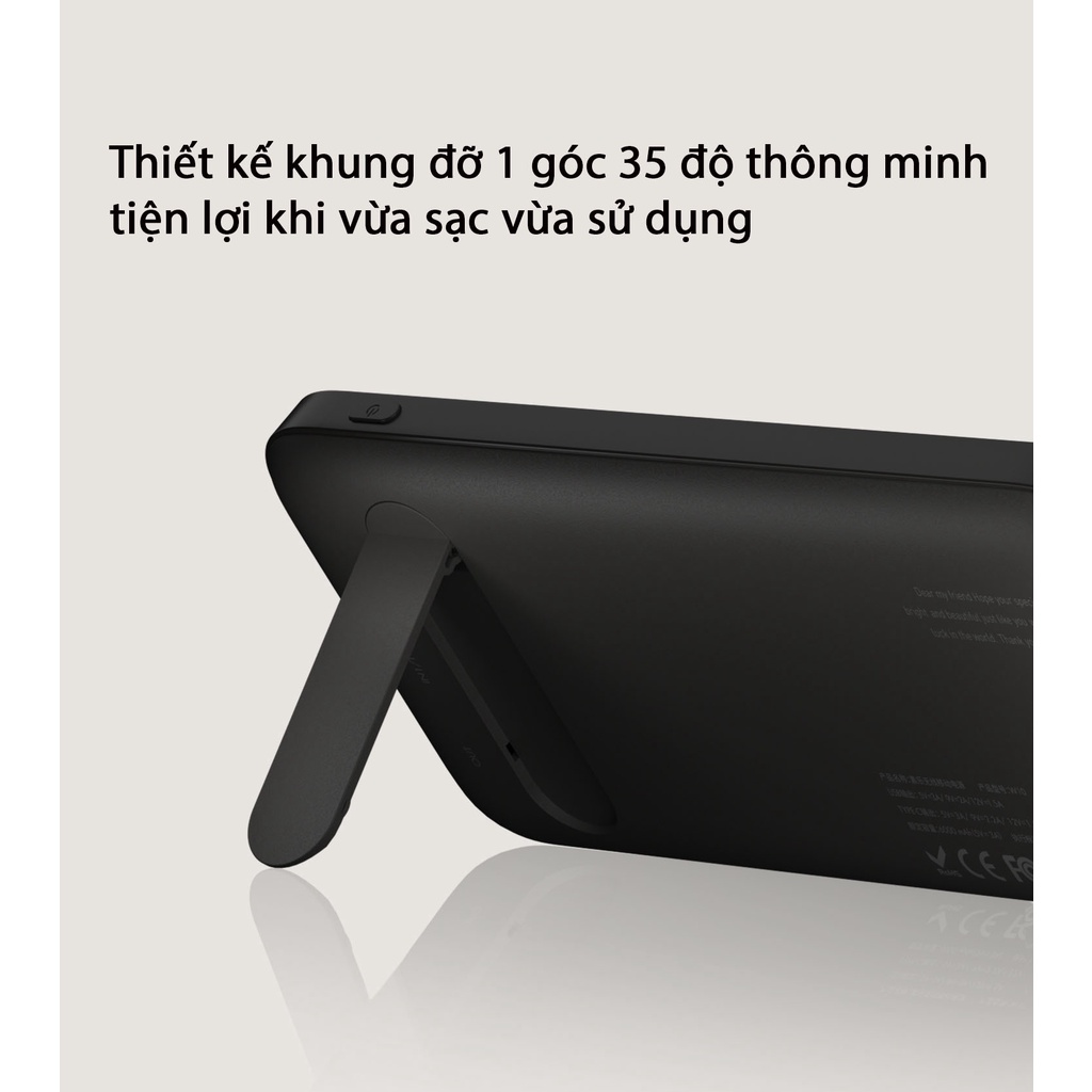- Thiết kê chân đỡ 35 độ khoa học giúp bạn tận hưởng trải nghiệm kép khi vừa sạc vừa sử dụng.