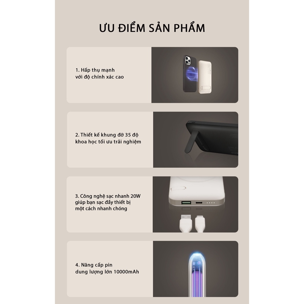 - Tên sản phẩm: Sạc dự phòng không dây MagSafe Solove W10