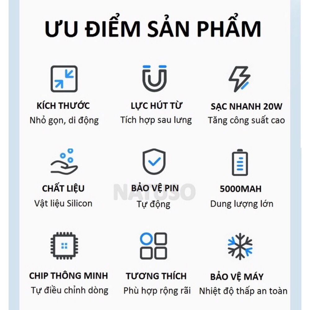 Sạc dự phòng không dây Magsafe 5000mAh công suất 20W