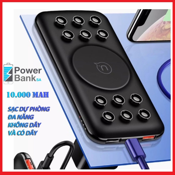 Sạc Dự Phòng Không Dây 10000Mah-Hỗ Trợ Có Cốc Hút Rất Dính Chắc Chắn-Bảo Hành 12 Tháng