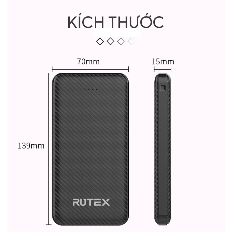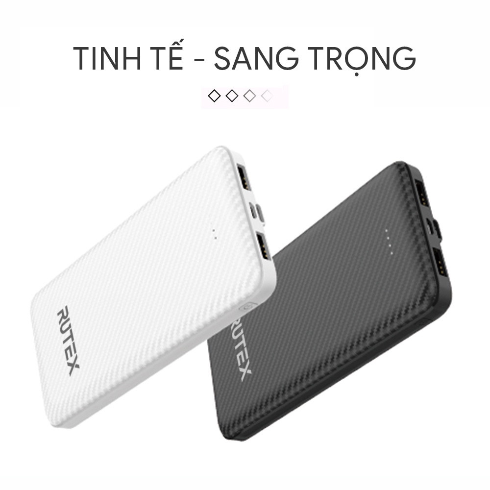 Sạc dự phòng,không dây RUTEX 10000mAh dung lượng chuẩn hỗ trợ đầu ra USB và TypeC với đèn báo nguồn LED - BH 12 Tháng