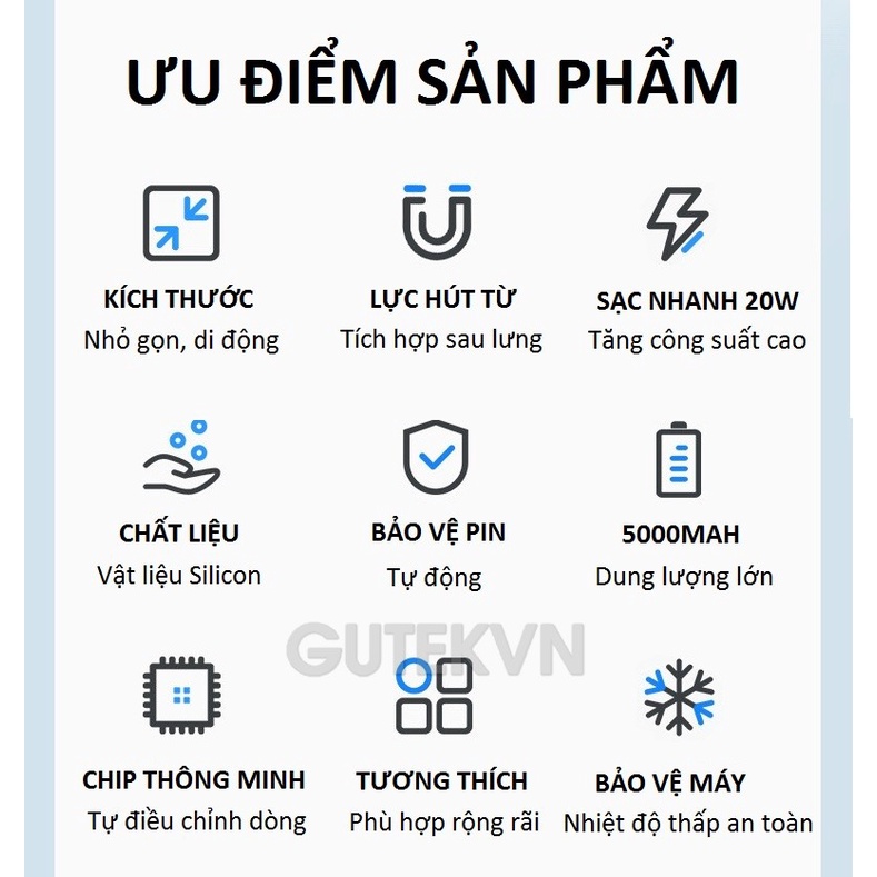 Sạc Dự Phòng Không Dây Sạc Nhanh Pin 5000mah Mini Nhỏ Gọn Cao Cấp Hỗ Trợ Cho Iphone/Android – Gutek Mag1🔥THÔNG TIN SẢN PHẨM: