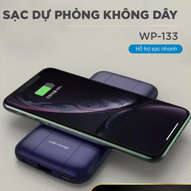 Sạc dự phòng không dây, sạc nhanh 10000mAh, wp133 chính hãng wk bảo hành 1 năm .. !