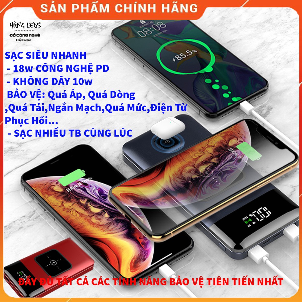 -Tích hợp sạc bằng cáp và sạc không dây, sạc nhanh tiên tiến Với chức năng sạc dự phòng thì sản phẩm được tích hợp dung lượng lên đến 20000mAh người dùng có thể sạc cùng lúc có dây cho 2 thiết bị mà vẫn với công suất tối đa 18W. Ngoài ra chức năng sạc nhanh không dây ổn định 10W và 7.5w với phạm vi cảm biến lớn ≤5mm, người dùng chỉ cần đặt điện thoại vào vùng cảm biến để cung cấp năng lượng cho các thiết bị của mình ngay cả khi đeo ốp cho smartphone. Đương nhiên là thiết bị chỉ tương thích với các chuẩn sạc không dây Qi. Đặc biệt giao diện sạc nhanh USB-C cho cả 2 chiều 18W cũng được trang bị, giúp rút ngắn thời gian sạc, tối ưu hóa hiệu quả sạc