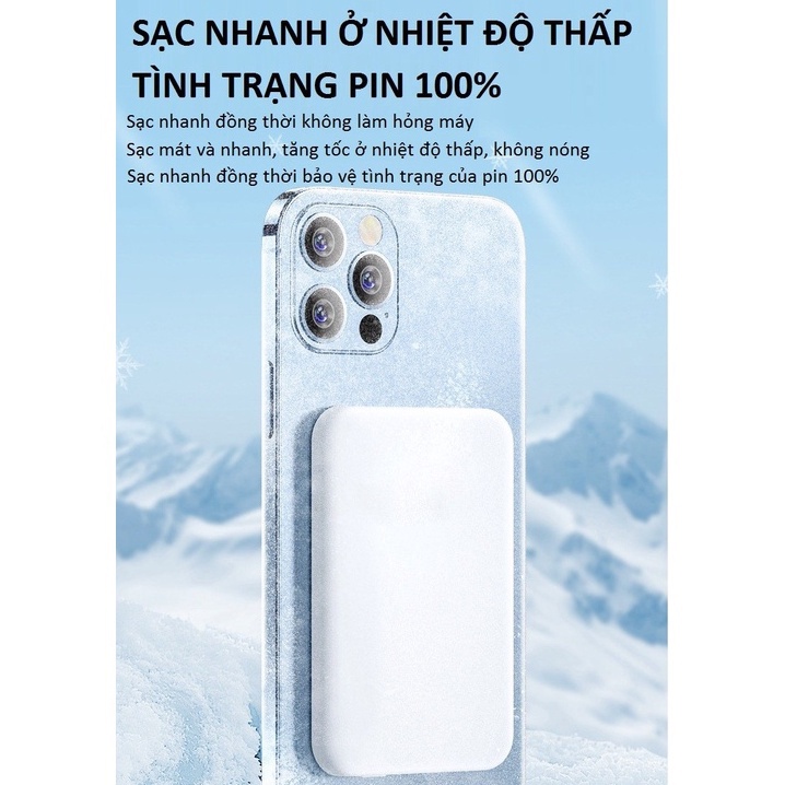 Sạc Dự Phòng Không Dây Từ Tính Sạc Nhanh Pin 5000mah Mini Nhỏ Gọn Cao Cấp Dùng Cho iPhone 8/X/11/12/13 An Toàn,Tiện Dụng