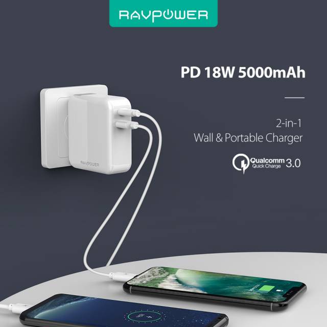 Sạc Dự Phòng Kiêm Củ Sạc RavPower 5000 18w Có PD/QC3.0 - Chính Hãng (RP-PB101)