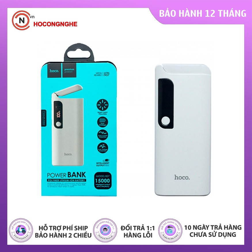 - Pin dự phòng B27 Hoco màn LCD hình hiển thị và đèn led cực sáng vào ban đêm.