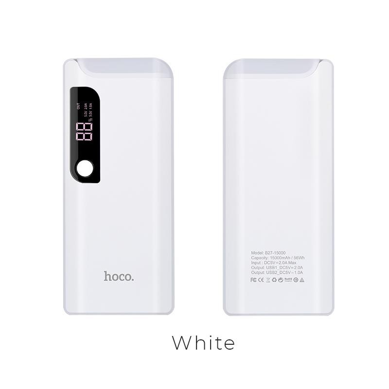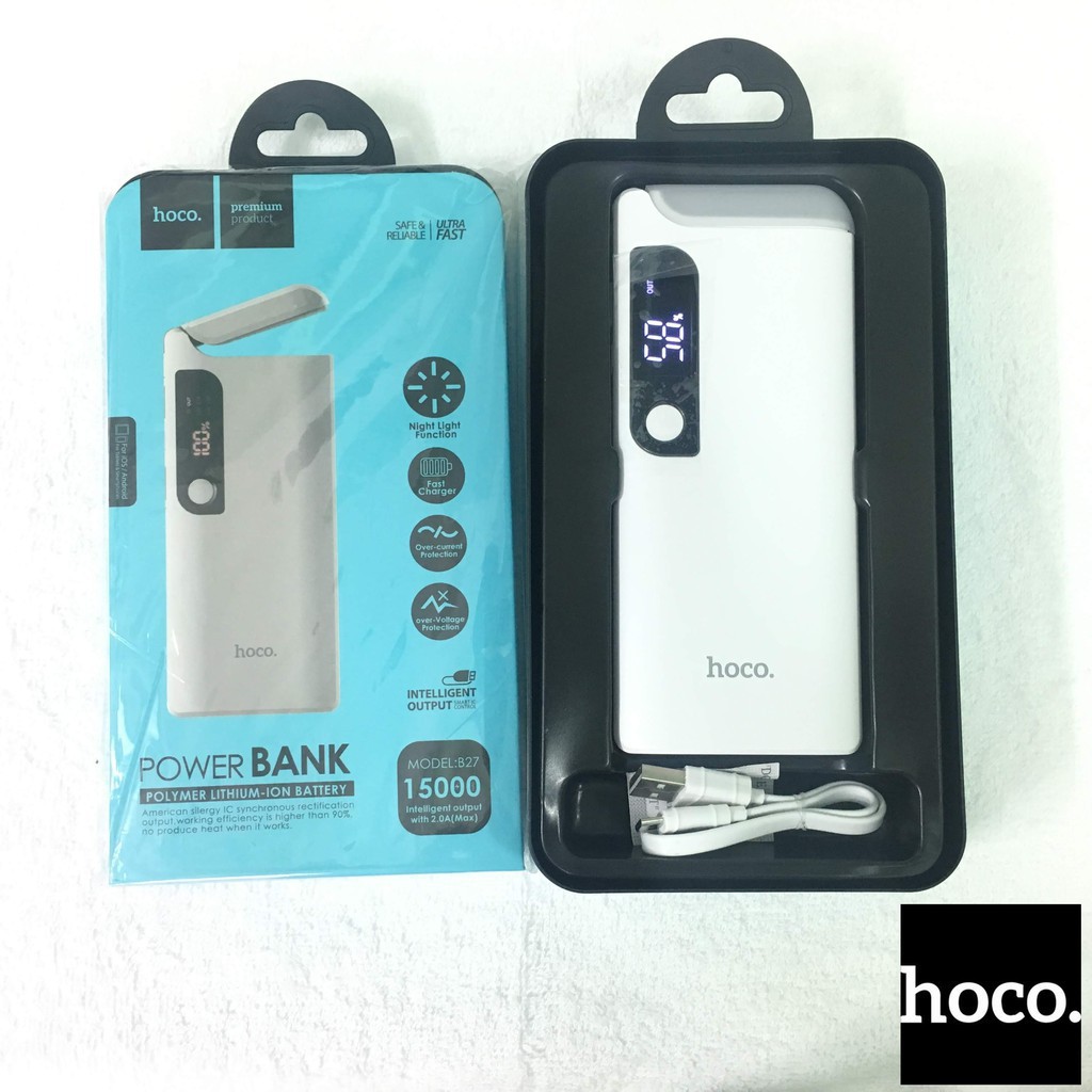 - Pin dự phòng B27 Hoco màn LCD hình hiển thị và đèn led cực sáng vào ban đêm dung lượng 15000Mah, bạn có thể biết được thông tin hiện trạng của pin sạc để kịp thời nạp đủ điện cho chúng vô tư sử dụng thoai mái nhất.