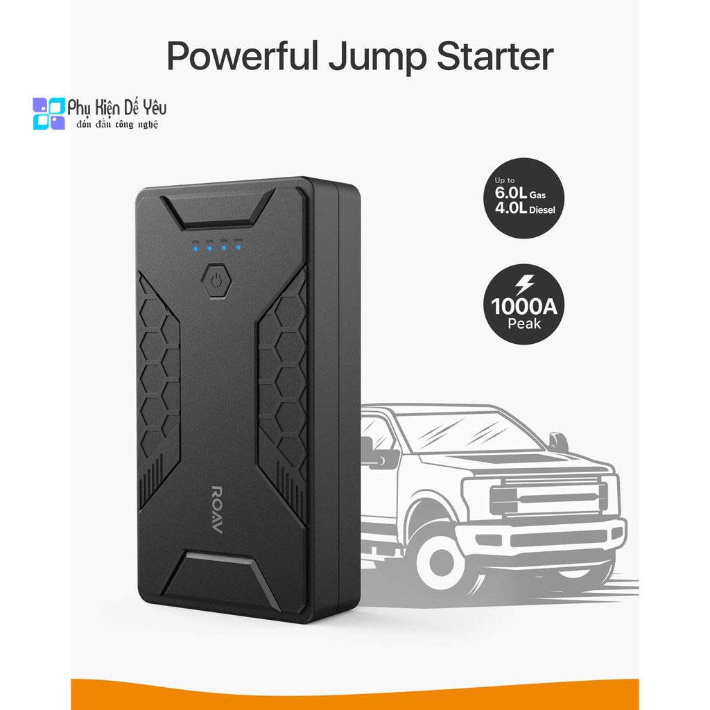 Đặc tính sản phẩm Bộ sạc dự phòng kiêm kích ắc quy ô tô ROAV Jump Starter Pro 12800mAh 12V/1000A (by ANKER) - R3130
