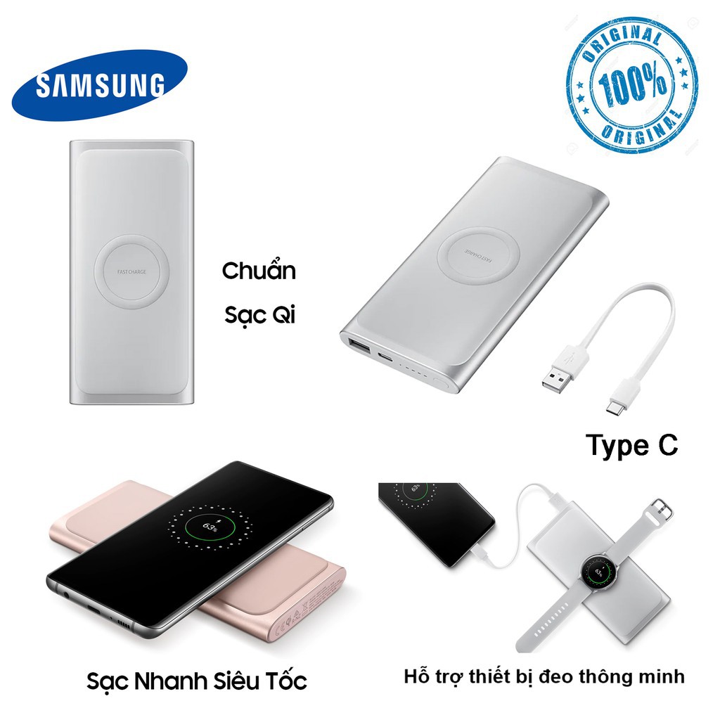 - Trải nghiệm tính năng Sạc Nhanh trên Pin Sạc Không Dây, nhanh chóng nạp đầy năng lượng cho thiết bị. Pin Sạc Không Dây cho phép sạc hai điện thoại cùng một lúc, thoải mái sạc đầy Galaxy S10e/S10/S10+ và chia sẻ pin sạc cho bạn đồng hành mọi lúc.