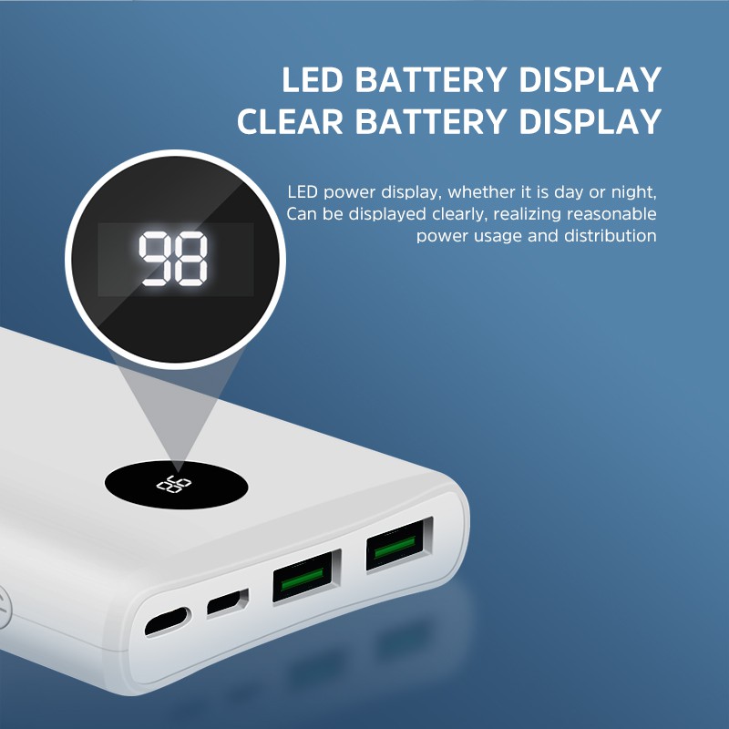 - Cổng đầu vào kép, cổng đầu ra USB kép, hỗ trợ sạc và xả đồng thời (nguồn điện di động có thể sạc bằng 2 dây, Micro usb, Type c; Type c cũng có thể là cổng ra)