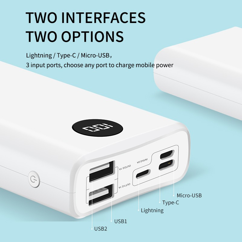 2. Ba giao diện đầu vào Micro-USB, Type-C và Lightning, có thể lựa chọn tùy theo tình hình thực tế, chi tiết thiết kế rất thân thiện với người sử dụng