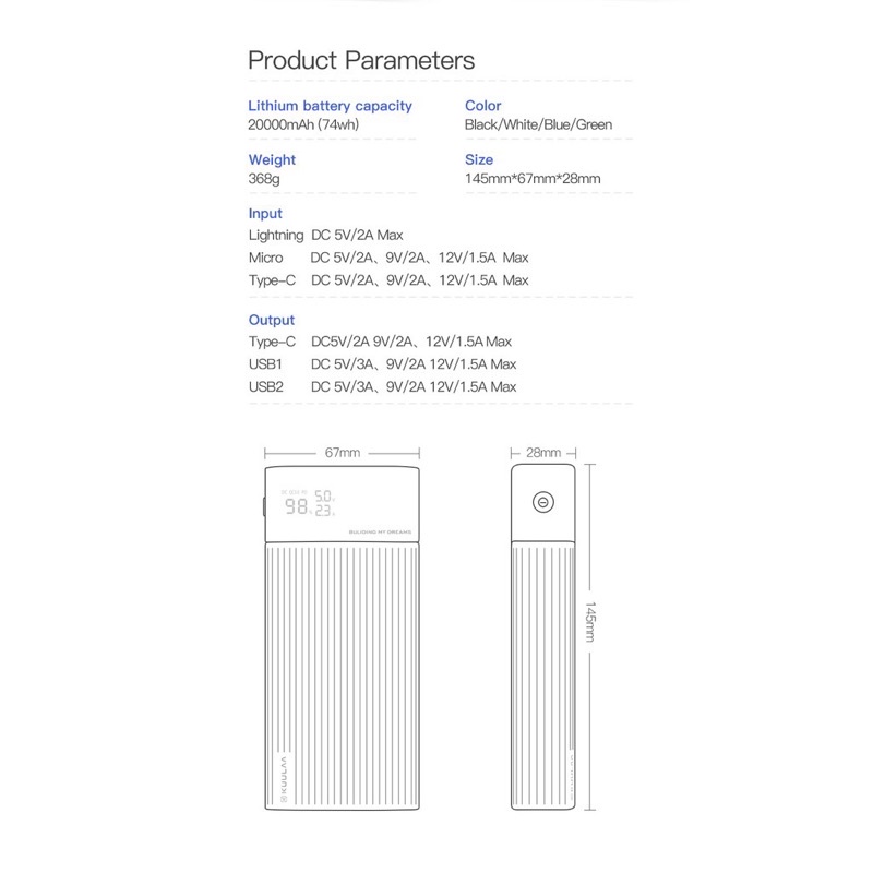 Thương hiệu: kuulaa | Xem thêm các sản phẩm Pin sạc dự phòng di động của kuulaaMô tả ngắn