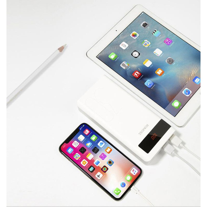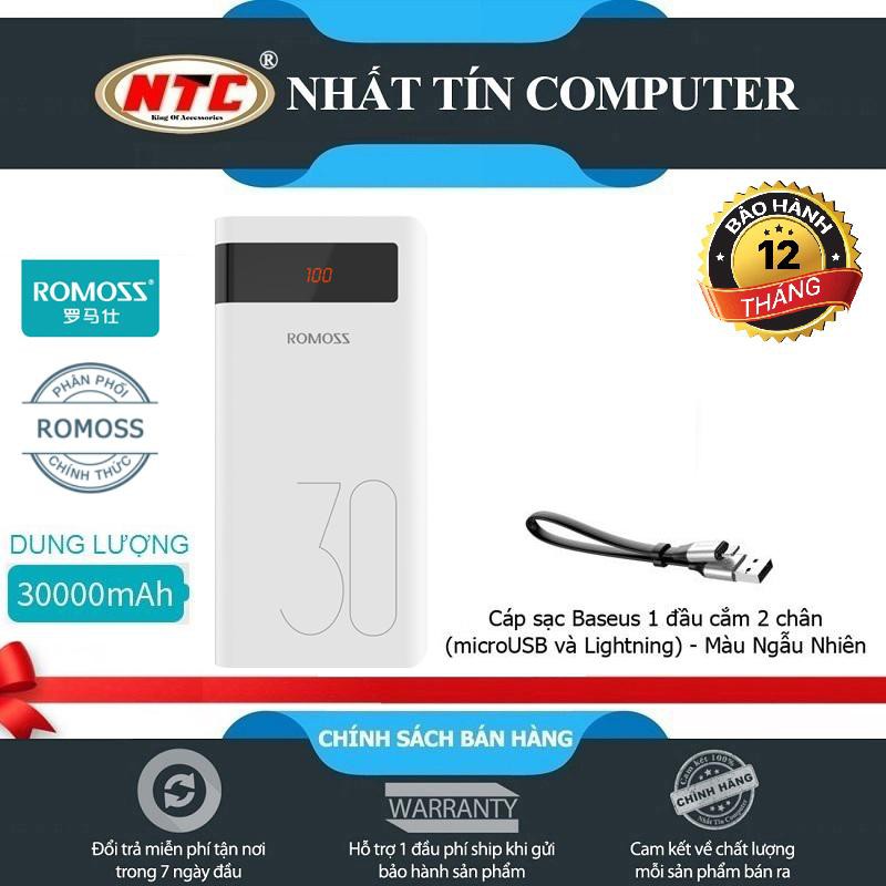Sạc dự phòng lõi Polymer Romoss Sense 8P có LCD dung lượng 30000mAh + tặng cáp Baseus 1 đầu cắm 2 chân (Trắng) - Hãng ph