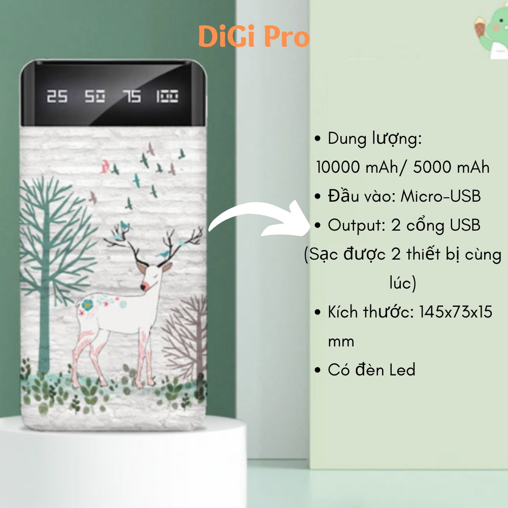 Sạc Dự Phòng Màn Hình Led 2 Cổng Sạc Thiết Kế Anime Dễ Thương có dung lượng lớn 5000-10000mAh và họa tiết động vật