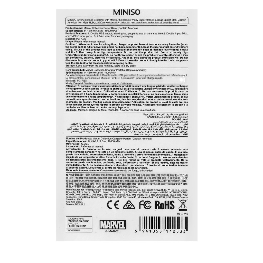 Tên Sản Phẩm :Sạc dự phòng MARVEL 2.0 10000Amh MC-023 (Captain America)HDBQ:Hãy giữ ở một nơi mát mẻ. Tránh ánh nắng trực tiếp và nhiệt độ cao.