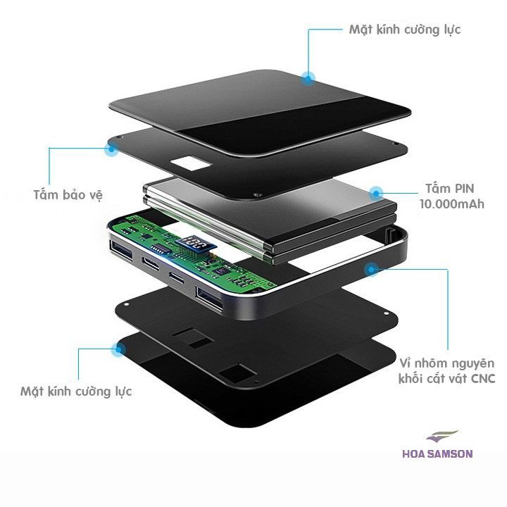 Giới thiệu Sạc dự phòng mặt kính 20000mAh 2 đèn pin và hiển thị % pin