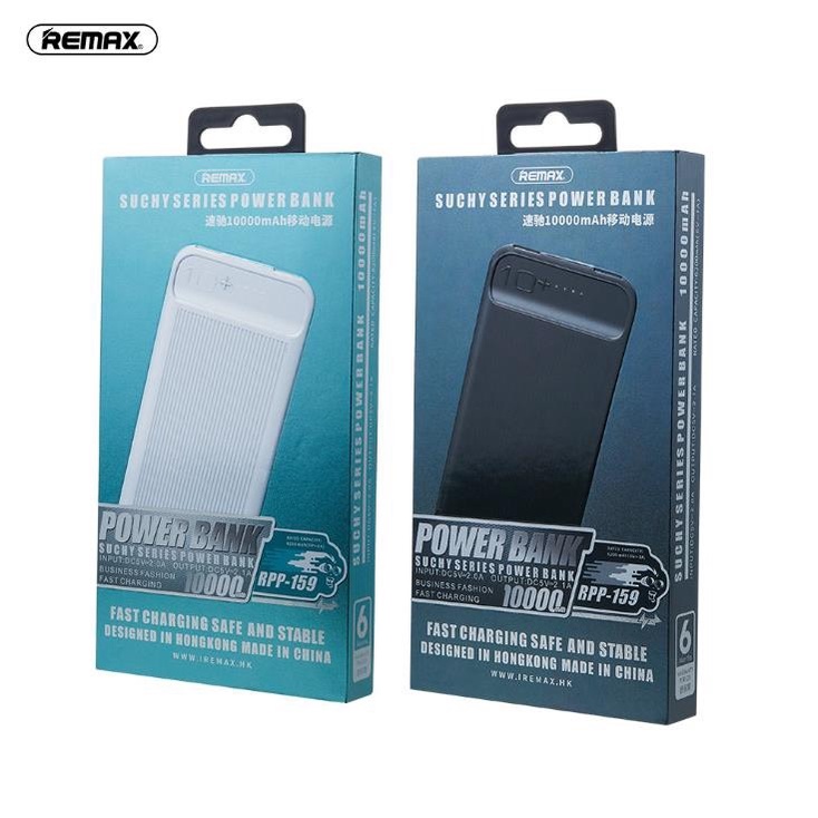Thông số kỹ thuật:Sạc dự phòng Remax 10.000mAh RPP159 sở hữu dung lượng 10000mAh, thiết kế nhỏ gọn, hỗ trợ sạc ổn định với chip sạc thông minh và khả năng đảm bảo an toàn bay là phụ kiện được rất nhiều người dùng tin tưởng, lựa chọn.
