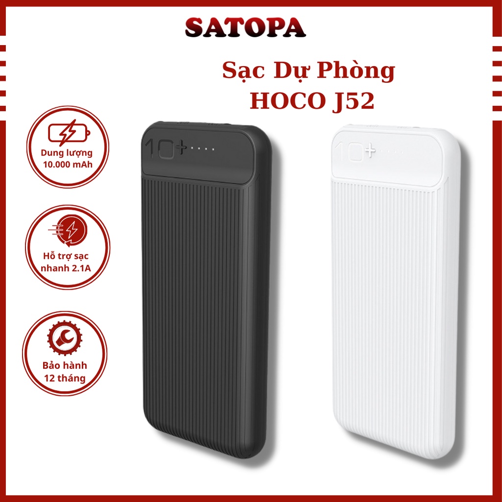 Giới thiệu Pin sạc dự phòng Hoco J52, Pin dự phòng 10000mah chính hãng nhỏ gọn hỗ trợ sạc nhanh 2A dùng cho iphone samsung - SATOPA