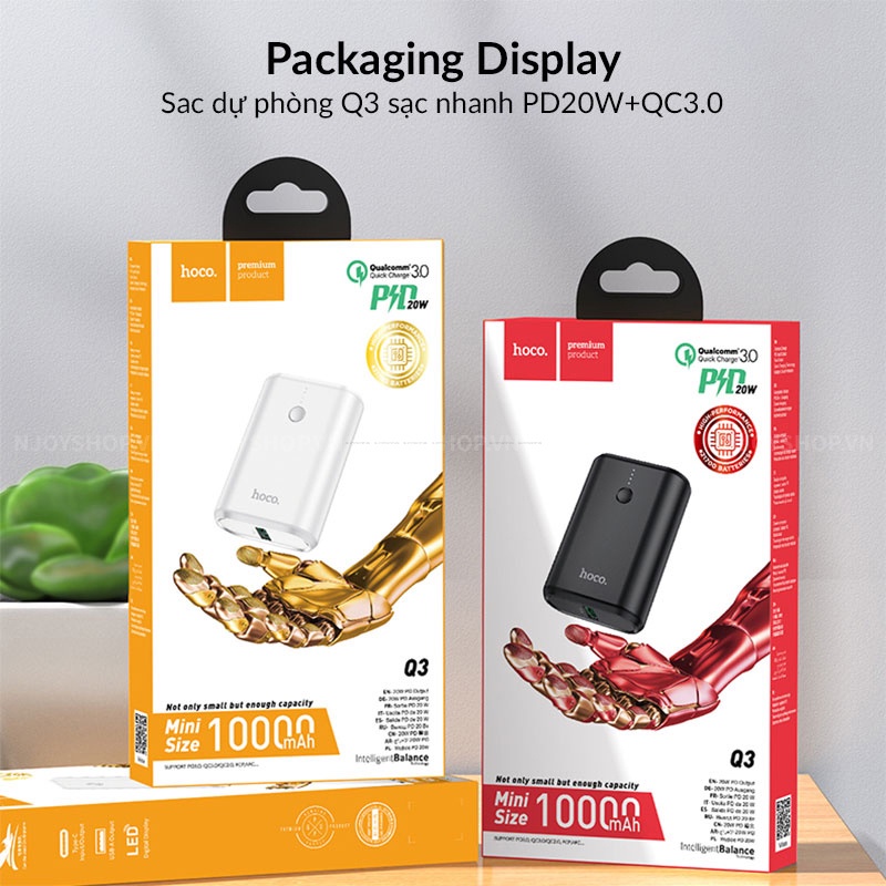Giới thiệu Sạc Dự Phòng Mini 10000mAh Sạc Nhanh PD 20W + QC 3.0 HOCO Q3 Đèn Led Báo Pin Cho iPhone Samsung Xiaomi Oppo Njoyshop