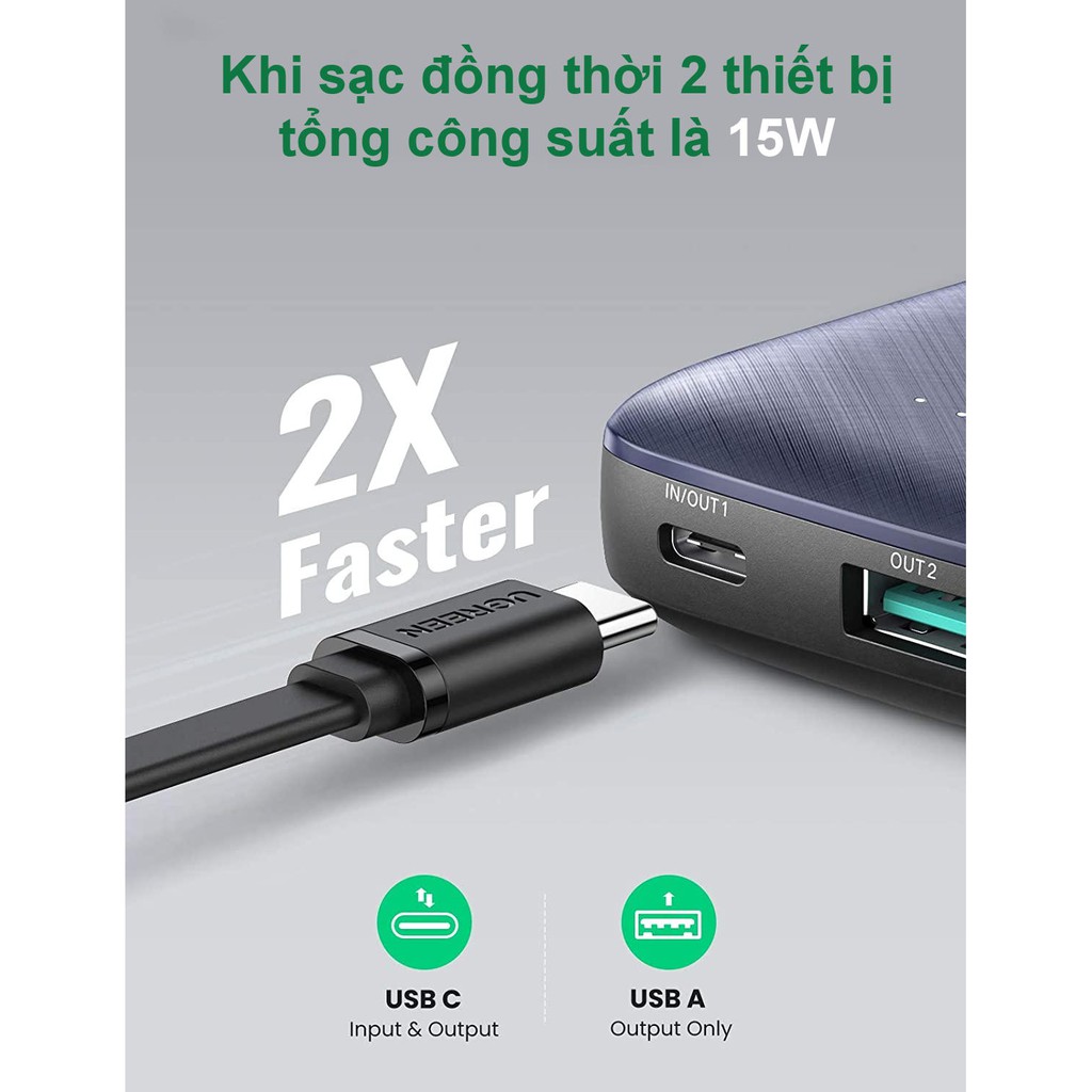 Sạc dự phòng mini hỗ trợ 2 cổng sạc USB type C công nghệ PD và 3.0Hãng sx: UGREEN
