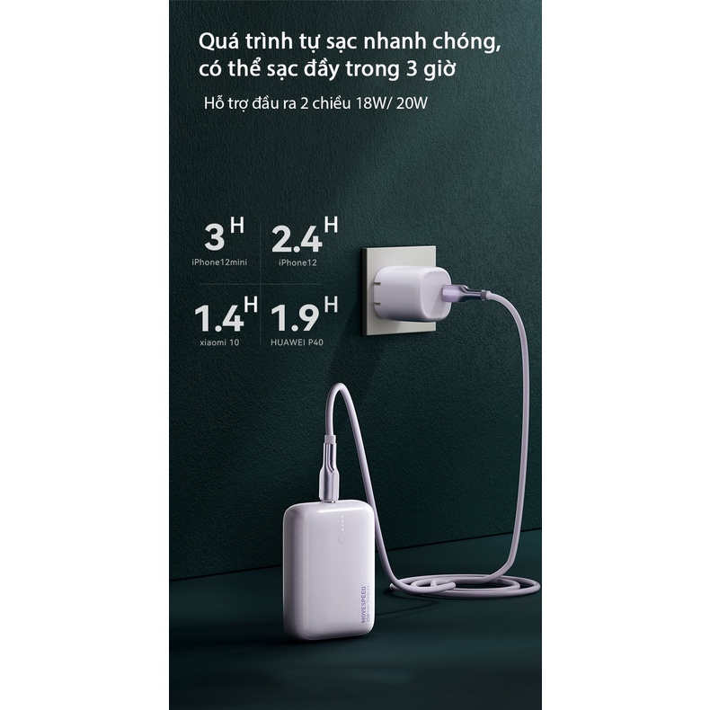 Sạc dự phòng Mini Q10 MOVESPEED 10000MAH sạc nhanh 2 chiều Type C công suất 20W dành cho Iphone, Samsung, Huwei...