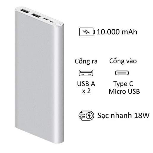 THÔNG SỐ Pin sạc dự phòng 10000mAh/20000mAh Xiaomi gen 3 18W, 45W: