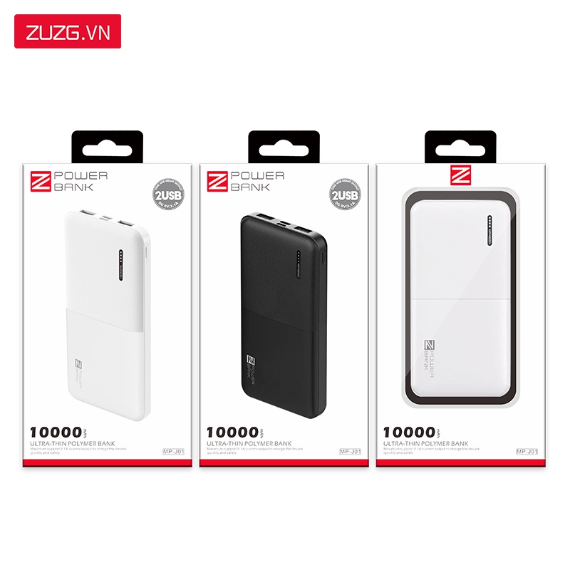 Sạc dự phòng 10000mah mini ZUZG 2 cổng chính hãng J01