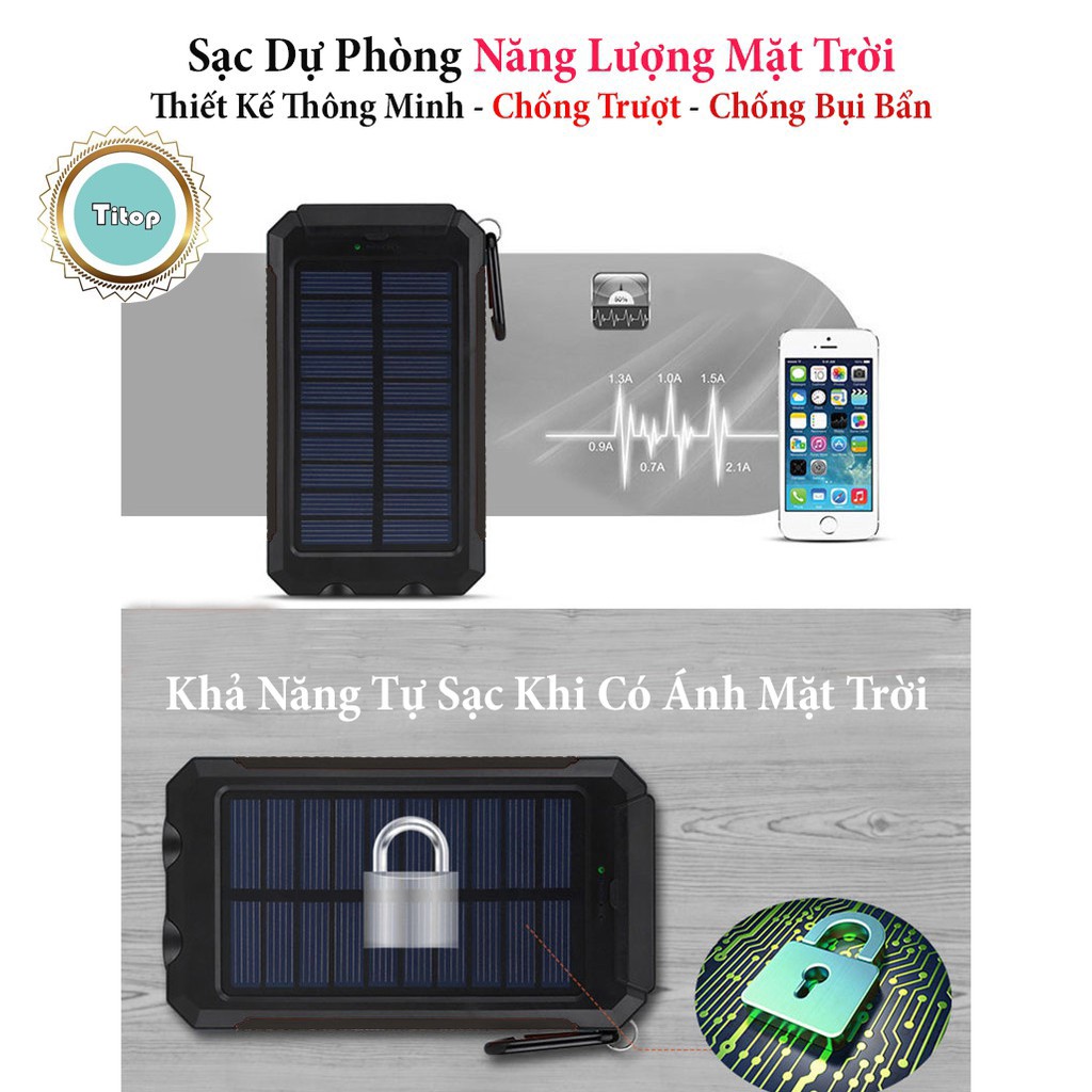 Sạc dự phòng năng lượng mặt trời, sạc đa năng có đèn pin 10000mAH - 20000mAH