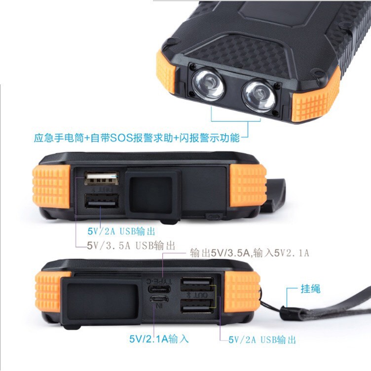 Giới thiệu Sạc dự phòng năng lượng mặt trời, sạc đa năng có đèn pin 10000mAH - 20000mAH