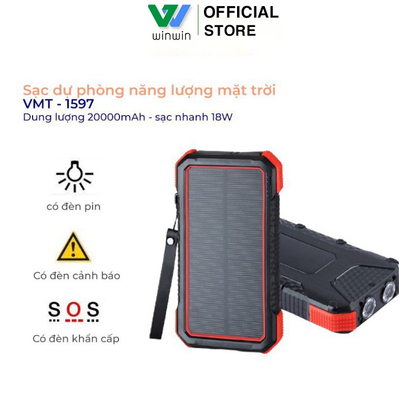 Sạc dự phòng năng lượng mặt trời 20000mAh sử dụng 2 cổng USB sạc nhanh 18W_Vimart