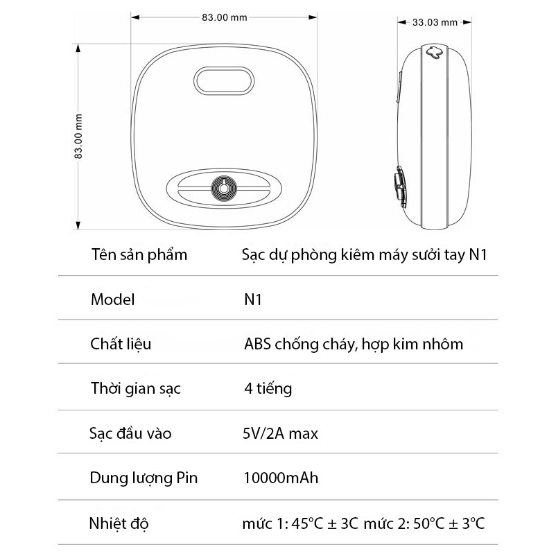 Sạc dự phòng nhỏ gọn N1 - Kiêm máy sưởi tai ấm áp cho mùa đông - Màu sắc độc đáo cá tính- Dung lượng pin sạc siêu lớn lên tới 10.000mah.