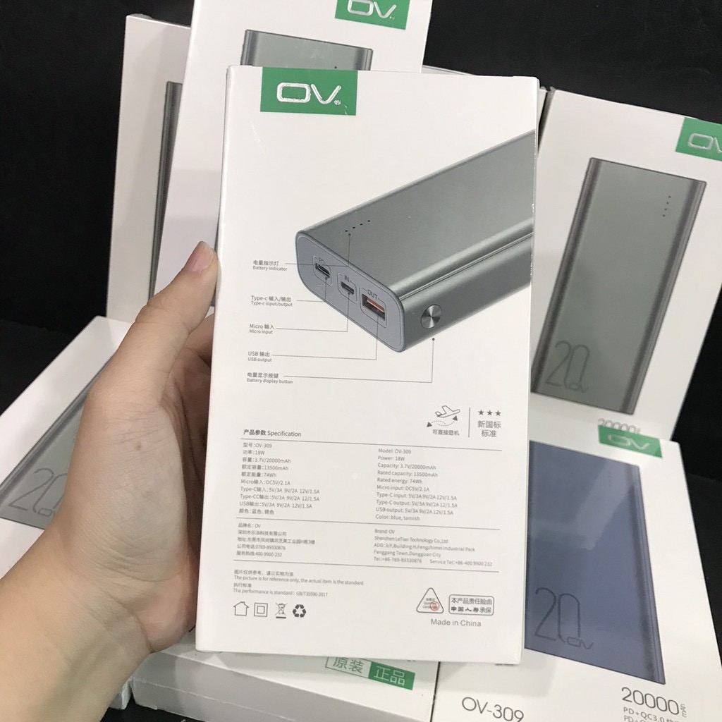[Mã 155ELSALE giảm 7% đơn 300K] Sạc dự phòng OV-309 20000mah có sạc nhanh PD 18w, QC 3.0