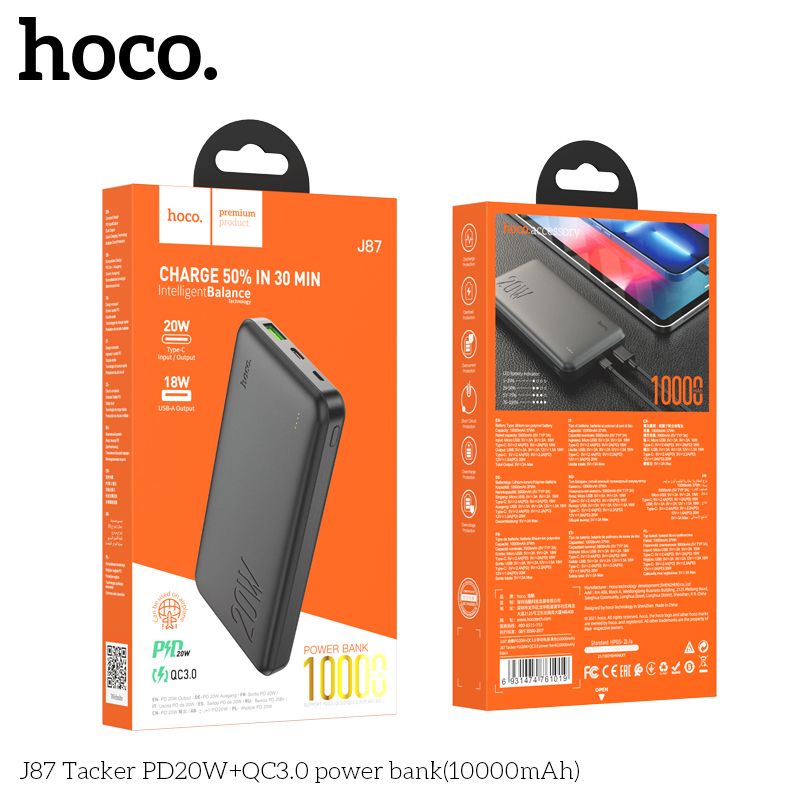 Sạc Dự Phòng PD 20w Và QC 3.0. Hoco J87 10000MAH , Cổng Sạc Type-c Sạc Đảo Chiều