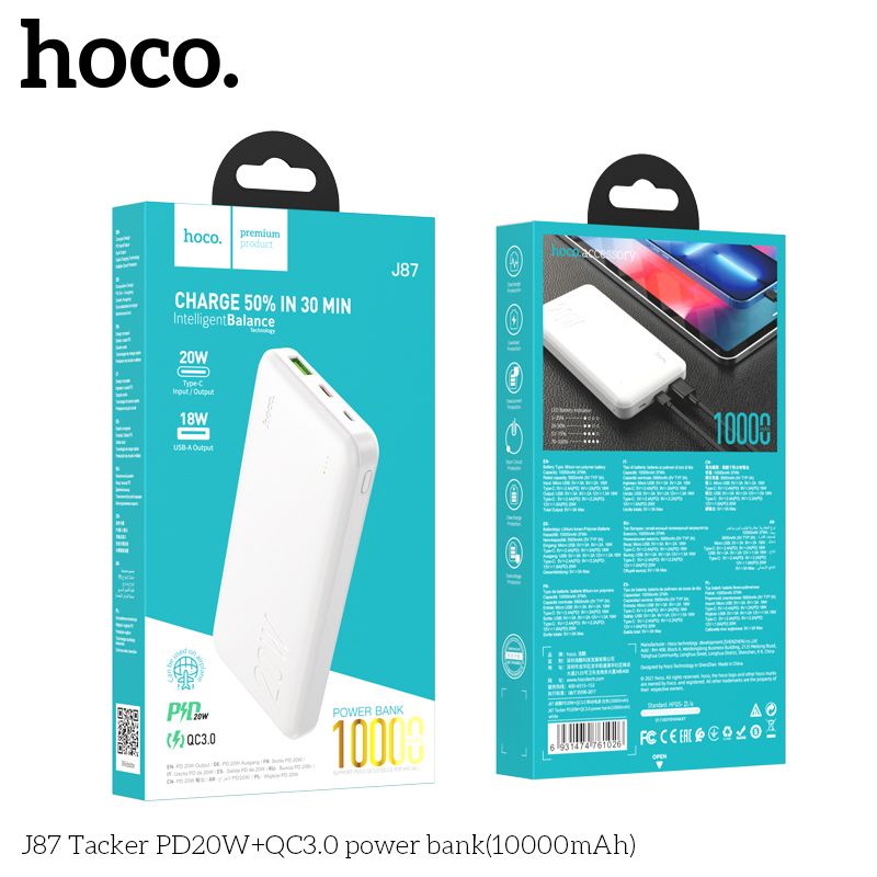 Điện Thoại & Phụ Kiện > Phụ kiện > Sạc dự phòng & Pin > Sạc dự phòng || Sạc Dự Phòng PD 20w Và QC 3.0. Hoco J87 10000MAH , Cổng Sạc Type-c Sạc Đảo ChiềuCòn hàng