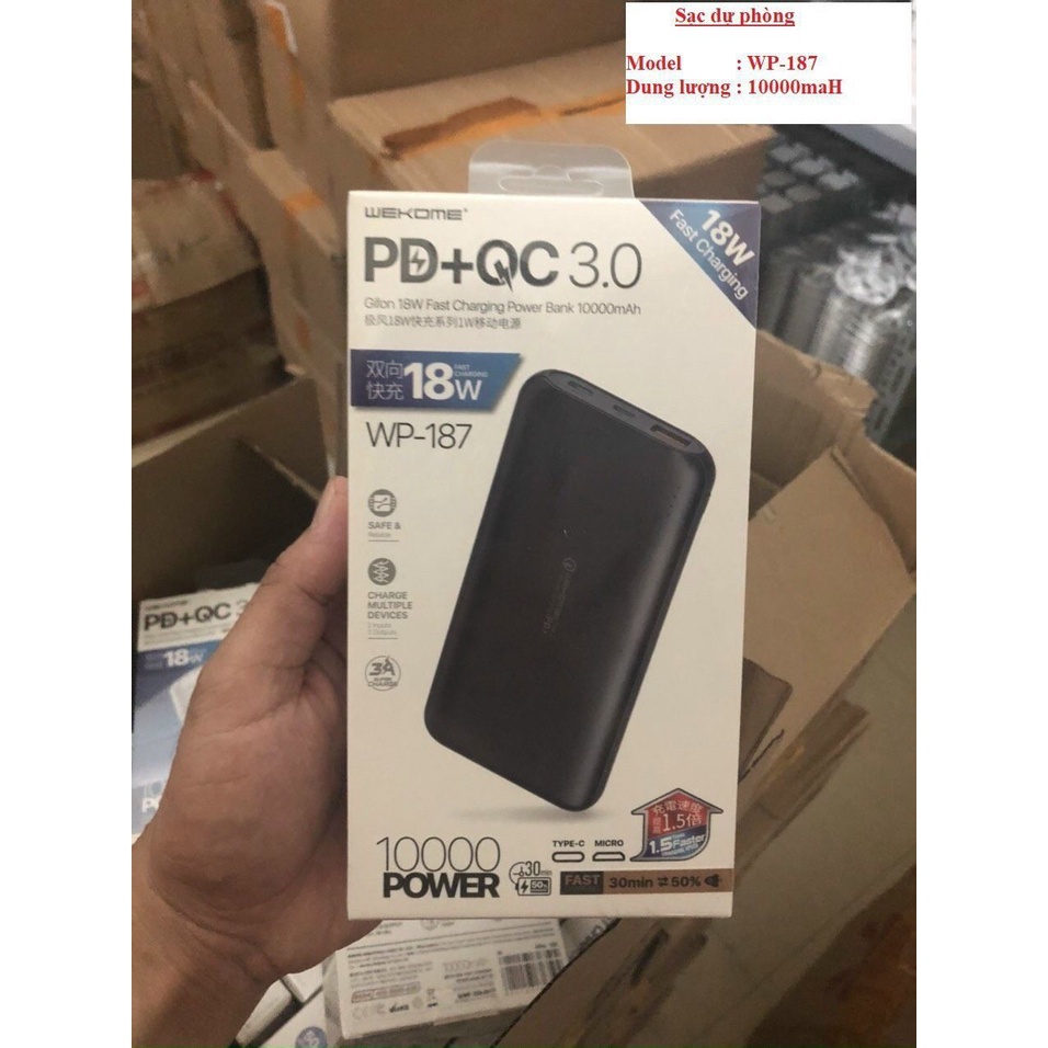 Sạc dự phòng PD18W +QC3.0 chính hãng, Pin Sạc Dự Phòng WP-187 20W 10000mAh Sạc Nhanh PD 18W