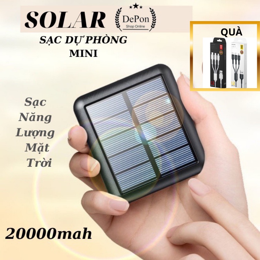 Sạc Dự Phòng,Pin Sạc Dự Phòng 20000mah,Sạc Năng Lượng Mặt Trời,Sạc Nhanh Pin Mini Nhỏ Gọn Tiện Mang Theo